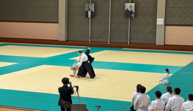 Zu Ehren von unserem Lehrer, Morito Suganuma Sensei, wurde ein Jubiläums-Event in Fukuoka durchgeführt. Vor 55 Jahren wurde Suganuma Sensei vom damaligen Doshu Kisshomaru Ueshiba nach Kyushu entsandt, um Aikido zu verbreiten und zu unterrichten. Seither hat Suganuma Sensei ein grosses, internationales Aikido-Netzwerk aufgebaut. Am 3.5.2025 traffen sich hunderte Aikidokas während 4 Stunden im Budokan Fukuoka, um Vorführungen abzuhalten. Die grossen Verdienste von Suganuma Sensei würdigte auch der aus Tokio angereiste Doshu, Moriteru Ueshiba.